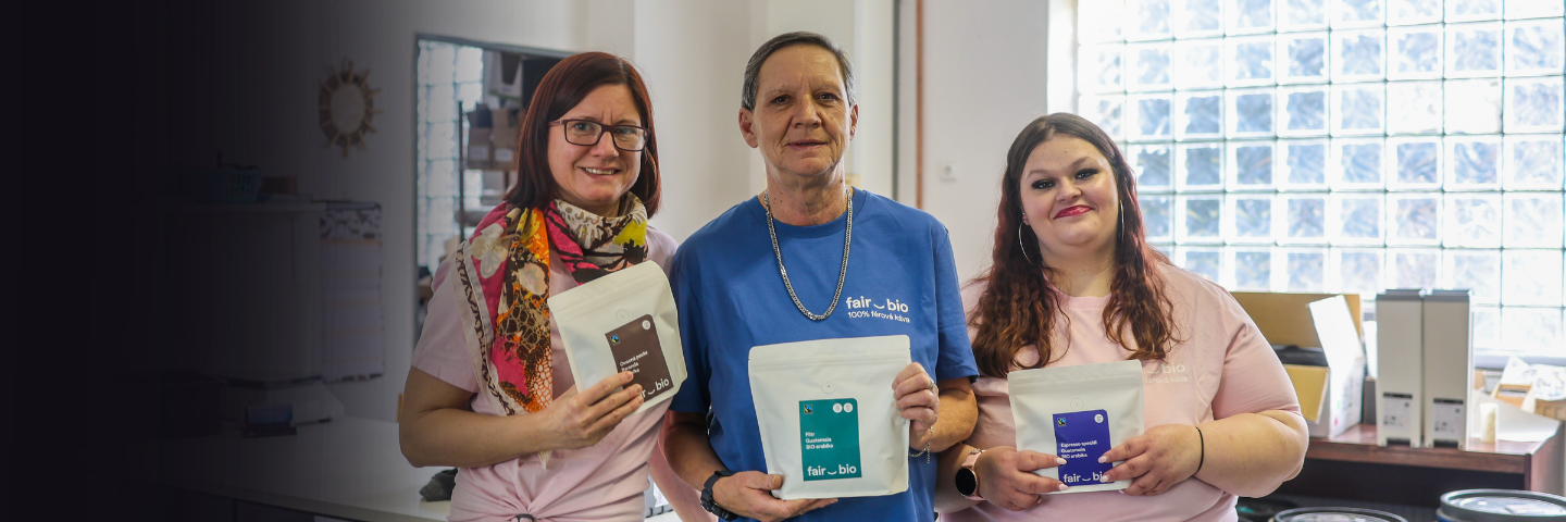 Ve FairBio pražírně mohou najít příležitost i ti, kteří ji zpravidla nedostávají. Většinu našich zaměstnanců tvoří osoby se zdravotním postižením. Jejich úkolem je především kompletovat objednávky a někteří se věnují i administrativě. Báječně doplňují realizační tým FairBio pražírny i celého FairBio družstva.